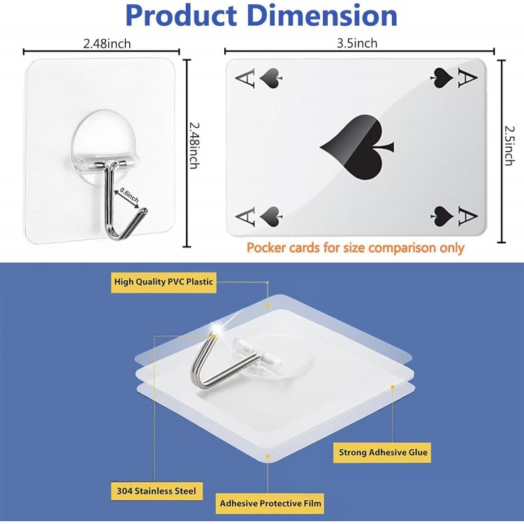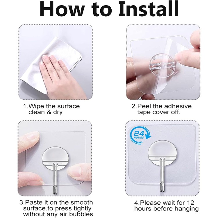 - 【Sleek Transparent Wall Hooks & Invisible Home Decor】Clear seamless design blends with any home decor, compact and lightweight for daily organization. NOT for painted walls, wallpaper or rough surfaces