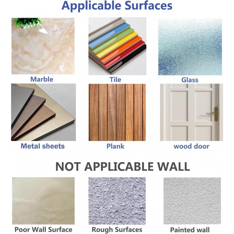 - 【High-Strength Adhesive Pad for Superior Stickiness】Strong adhesive pads provide reliable hold and enhanced stability compared to standard wall hooks. Ideal for smooth surfaces including tile, glass, wood, ceramic, metal and plastic